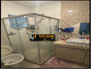 - Banheiro social, com armário planejado e box;